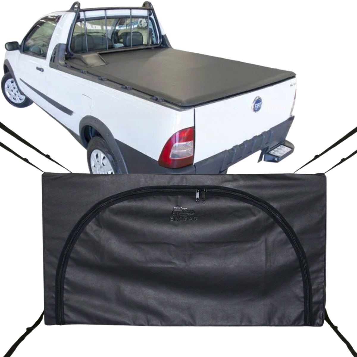 Bolsa Flash Cover Ecobag Caçamba Fiat Strada Até 2013 Nylon Preto 296L