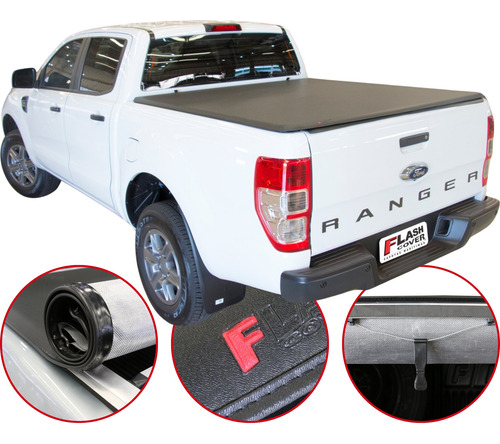 A Capota Marítima da Flash Cover reúne as principais qualidades da linha Flash Force, líder de mercado. Produzida em lona vinílica de PVC com trama 8x8 de poliéster e acabamento em debrum de lona, oferece durabilidade, resistência ao desgaste e proteção UV, mantendo a boa estética da picape. O sistema de acionamento conta com puxadores anatômicos, tensores encurvados para evitar acúmulo de água e fixação em alumínio com borracha E.V.A., garantindo proteção da caçamba, melhora na aerodinâmica e um acabamento superior.