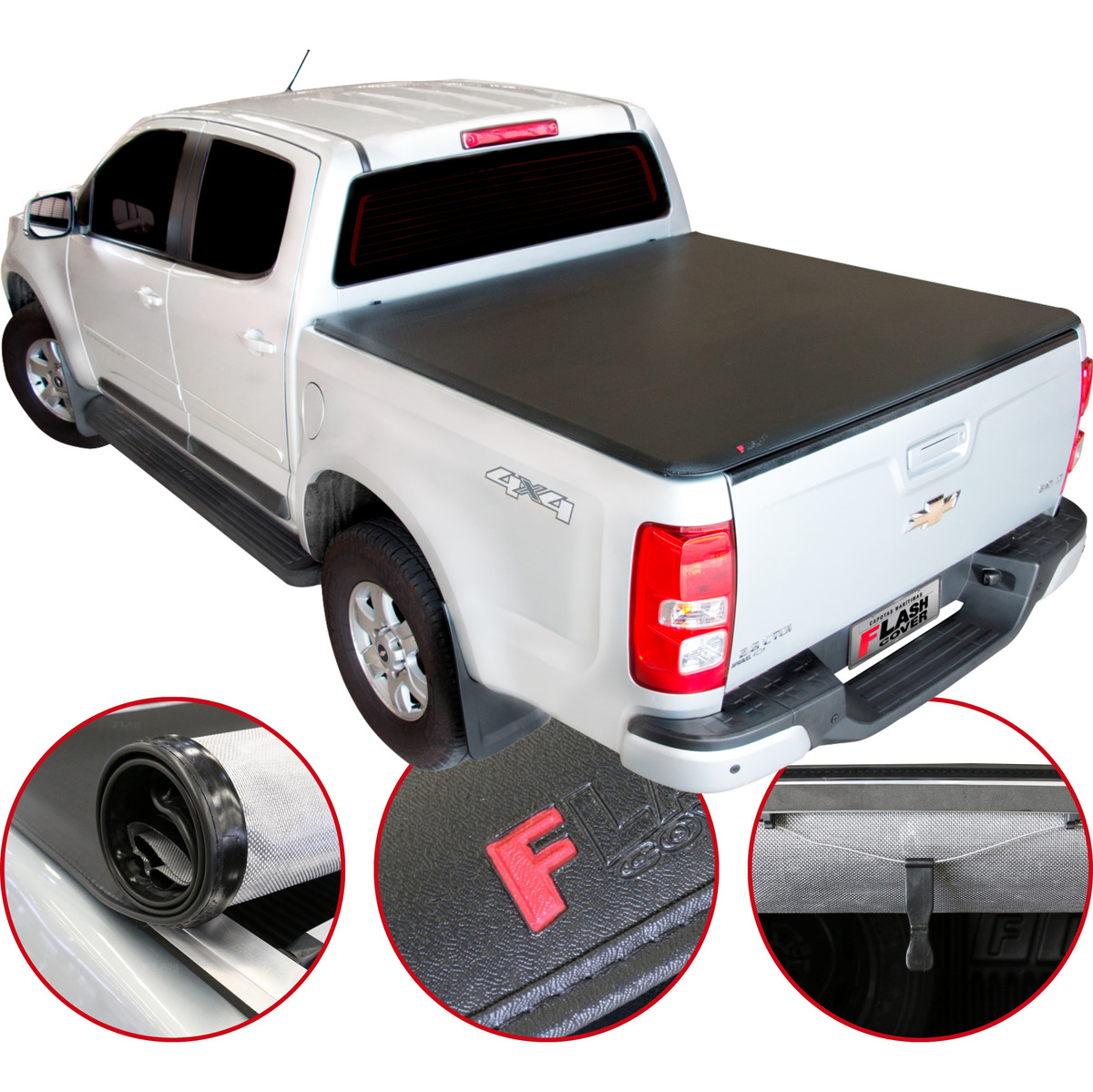 A Capota Marítima da Flash Cover reúne as principais qualidades da linha Flash Force, líder de mercado. Produzida em lona vinílica de PVC com trama 8x8 de poliéster e acabamento em debrum de lona, oferece durabilidade, resistência ao desgaste e proteção UV, mantendo a boa estética da picape. O sistema de acionamento conta com puxadores anatômicos, tensores encurvados para evitar acúmulo de água e fixação em alumínio com borracha E.V.A., garantindo proteção da caçamba, melhora na aerodinâmica e um acabamento superior.