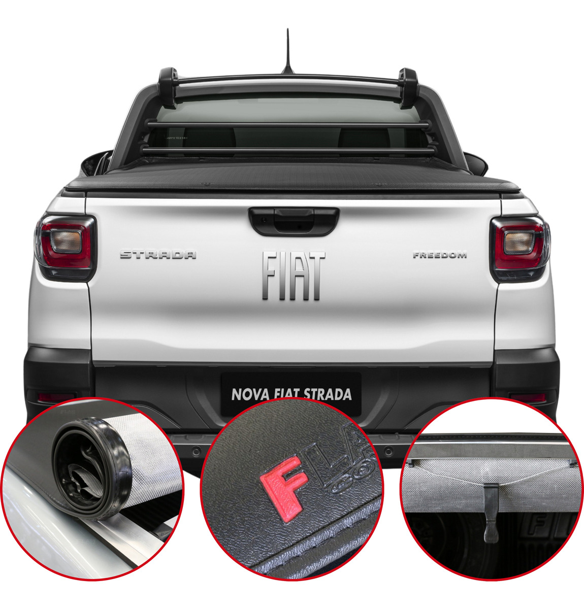 A Capota Marítima da Flash Cover reúne as principais qualidades da linha Flash Force, líder de mercado. Produzida em lona vinílica de PVC com trama 8x8 de poliéster e acabamento em debrum de lona, oferece durabilidade, resistência ao desgaste e proteção UV, mantendo a boa estética da picape. O sistema de acionamento conta com puxadores anatômicos, tensores encurvados para evitar acúmulo de água e fixação em alumínio com borracha E.V.A., garantindo proteção da caçamba, melhora na aerodinâmica e um acabamento superior.