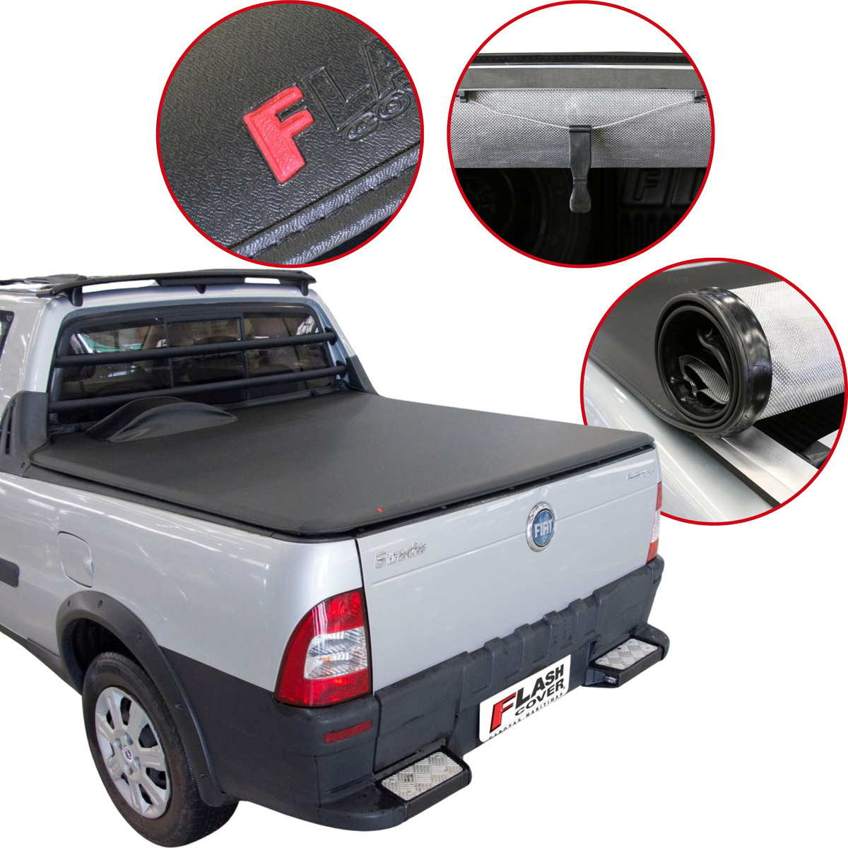 Após enrolar a lona é possível manter a mesma enrolada, devido as duas fitas de travamento que a capota possui, tudo isso de forma simples e fácil.