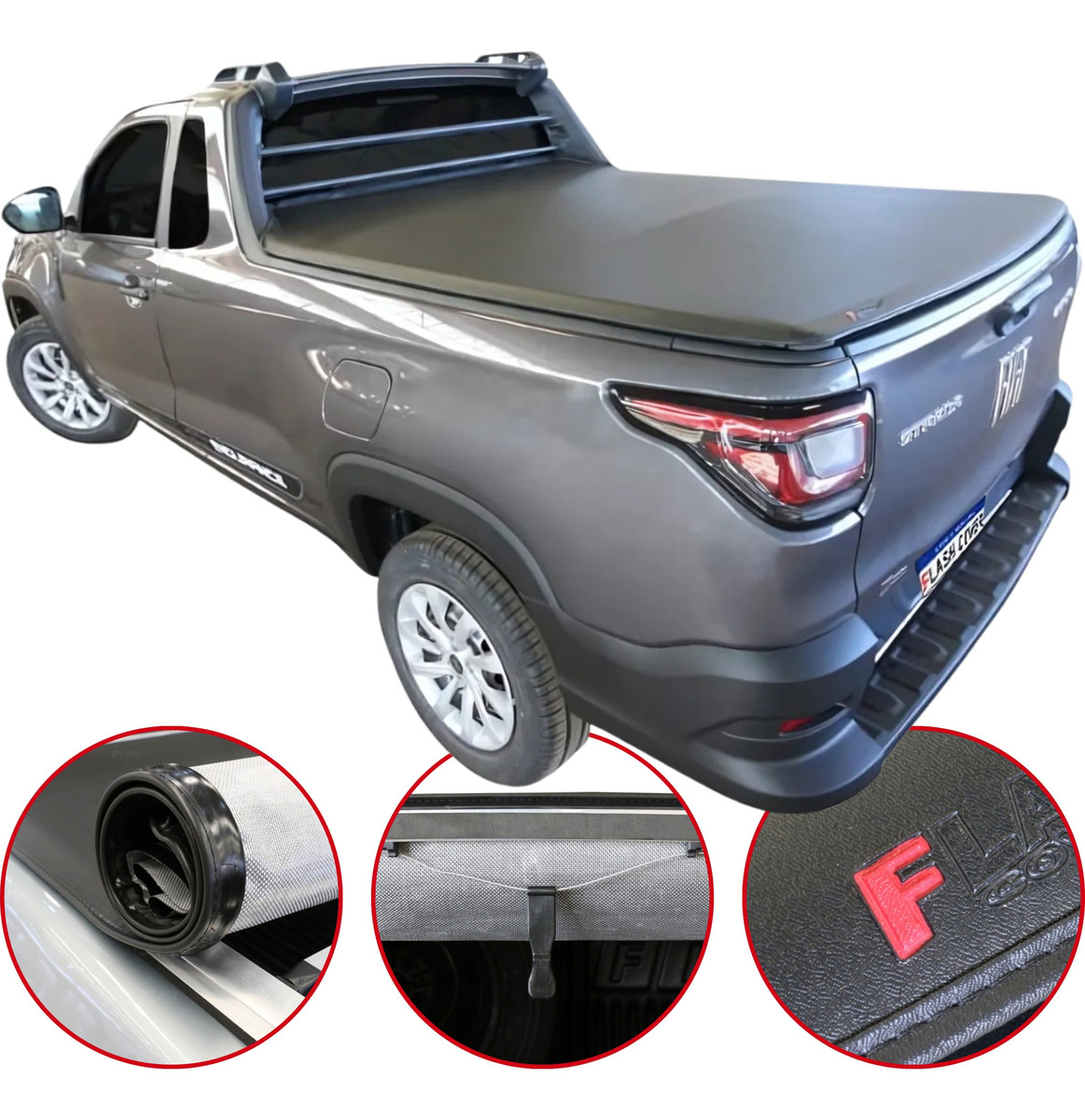 A Capota Marítima da Flash Cover reúne as principais qualidades da linha Flash Force, líder de mercado. Produzida em lona vinílica de PVC com trama 8x8 de poliéster e acabamento em debrum de lona, oferece durabilidade, resistência ao desgaste e proteção UV, mantendo a boa estética da picape. O sistema de acionamento conta com puxadores anatômicos, tensores encurvados para evitar acúmulo de água e fixação em alumínio com borracha E.V.A., garantindo proteção da caçamba, melhora na aerodinâmica e um acabamento superior.