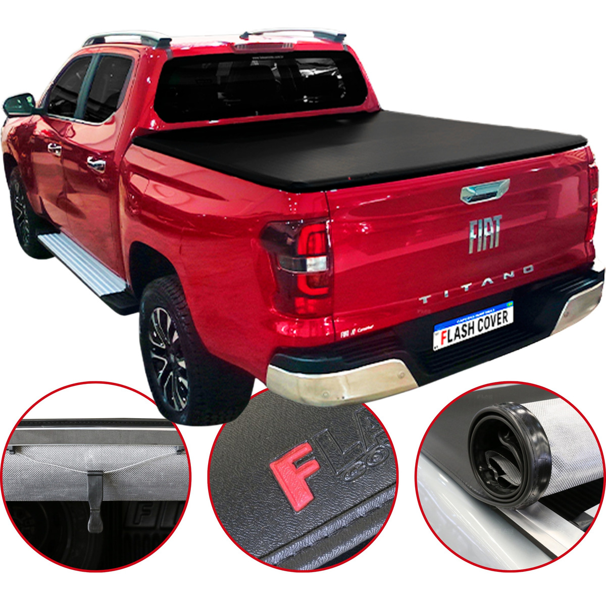 A Capota Marítima da Flash Cover reúne as principais qualidades da linha Flash Force, líder de mercado. Produzida em lona vinílica de PVC com trama 8x8 de poliéster e acabamento em debrum de lona, oferece durabilidade, resistência ao desgaste e proteção UV, mantendo a boa estética da picape. O sistema de acionamento conta com puxadores anatômicos, tensores encurvados para evitar acúmulo de água e fixação em alumínio com borracha E.V.A., garantindo proteção da caçamba, melhora na aerodinâmica e um acabamento superior.